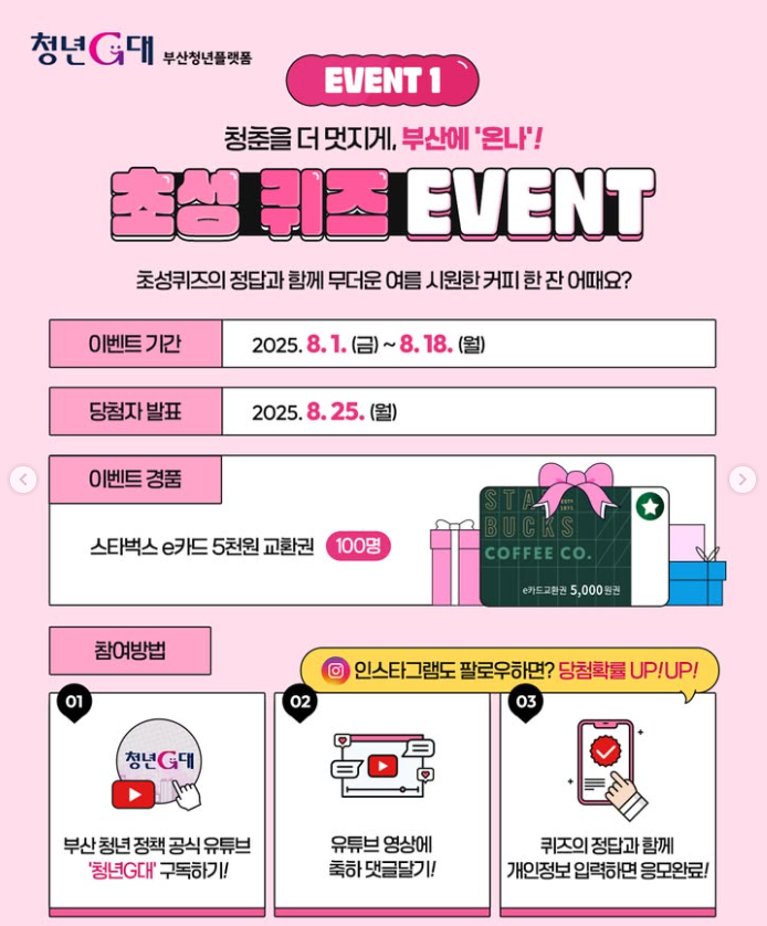 | 탄생 기념 빅 이벤트 | 8.1 ~ 8.18 | 스타벅스 쿠폰, 청년패스 굿즈 |