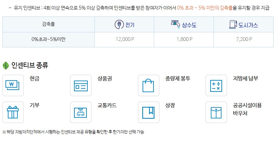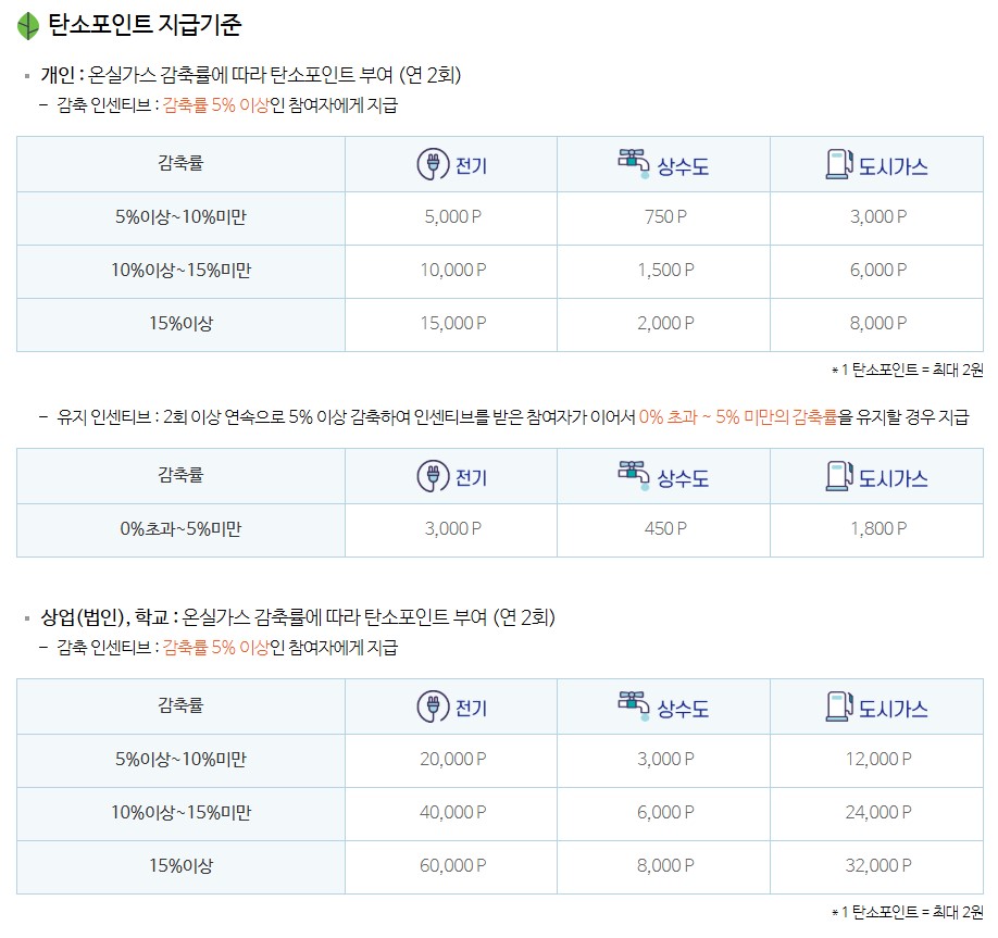 - 감축량 1kWh 당 1~2P 차등 지급 (에너지 항목별)