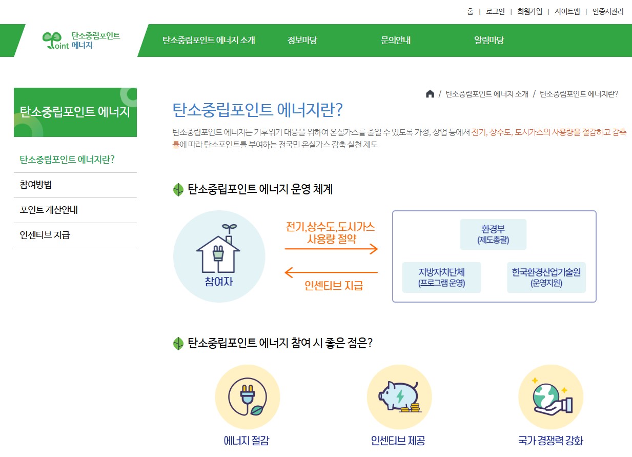쉽게 말해, 우리가 전기를 절약하거나 자동차 대신 대중교통을 이용하는 등 친환경 생활을 실천하면 포인트로 보상받을 수 있는 시스템이에요.