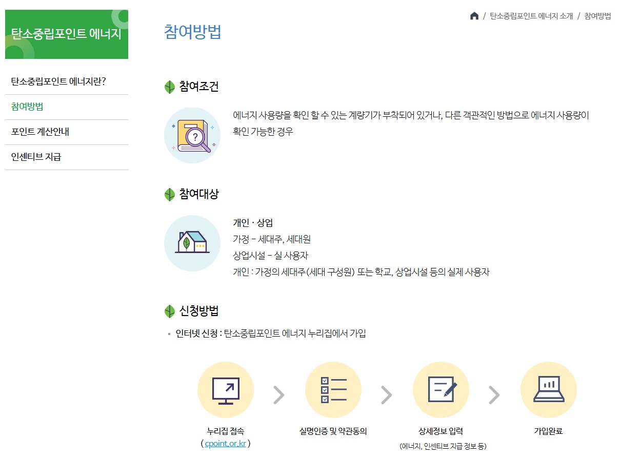 2025년 현재 기준으로 탄소중립포인트에 참여하려면 📎 탄소중립포인트 누리집에서 회원가입 후 ‘탄소포인트제 참여 신청’만 하면 끝이에요. 아주 간단하죠?