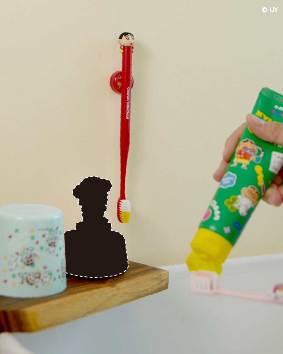 | 양치할 때 | 짱구 캐릭터 칫솔홀더, 컵 |